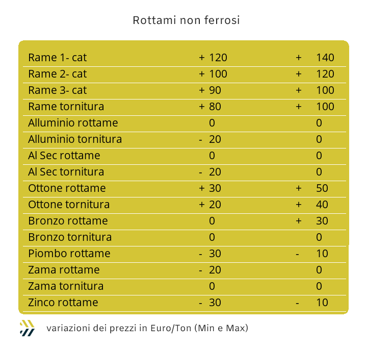 I prezzi dei non ferrosi sono stati trainati non dai valori LME, ma dalla debolezza dell'Euro sul Dollaro. Continuano a salire le quotazioni dei rottami d'acciaio in Turchia, mentre in Italia si intravedono timidi segnali di ripresa |