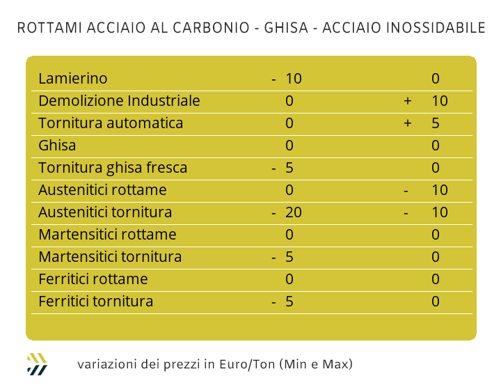 Il clima relativamente dimesso che ha accompagnato tutto lo svolgimento del LME Week ha contribuito a rendere relativamente stabili i prezzi degli “industriali” in Borsa, ritornando ad essere determinante per la definizione dei prezzi in Euro dei rottami non ferrosi il controvalore valutario con il Dollaro. Un fattore quello del cambio che ha permesso al Rame di mantenere la componente di adeguamento prezzo in territorio positivo con un valore medio di circa 120 Euro per tonnellata e per rimanere in ambito “rossi”, anche una crescita dei valori correlati ai rottami di Ottone di circa 50 Euro. L’attuale stabilità dell’Alluminio USD 3mesi in Borsa ha come neutralizzato le variazioni delle quotazioni del suo gruppo di rottami e viste le prospettive del valore del metallo al LME, i prezzi degli scarti di lavorazione potrebbero a breve adeguarsi verso valori inferiori. Gli spazi di ottimismo che qualche settimana fa avevano accompagnato favorevolmente l’insieme dei rottami di inox austenitico, sono stati riposti e con variabilità ora negative nell’ordine di 10 Euro tonnellata per i rottami di diretta definizione con preponderanza di Nichel in composizione, mentre mantengono stabilità di valore i prezzi dei duplex e questo grazie al rinnovato apprezzamento del Molibdeno. La visuale allargata del panorama prezzi dei ferrosi deve obbligatoriamente fare tappa in Turchia, dove la quotazione dell’HMS 1/2 resa CFR continua a mantenere un valore positivo nel differenziale su base otto giorni e che attualmente risulta essere di 2 Dollari per tonnellata. Il mercato italiano dei rottami di acciaio ha iniziato a mostrare timidi segnali di variabilità verso l’alto per le demolizioni E1 e E3 tra i 5 e i 10 Euro per tonnellata, mentre di 5 Euro è stato l’adeguamento in crescita delle torniture. I prezzi non sono variati per il lamierino E8 e per il frantumato E40, che di riflesso vede contrarsi il “premio mulino” in funzione della crescita del prezzo delle demolizioni pesanti E1. I movimenti positivi dei valori di alcune classifiche hanno consentito all’indice MetalWeek™ di crescere su base settimanale di 0,7 Euro, portando il valore medio dei rottami acquistati da acciaierie e fonderie a 301,36 per tonnellata. |