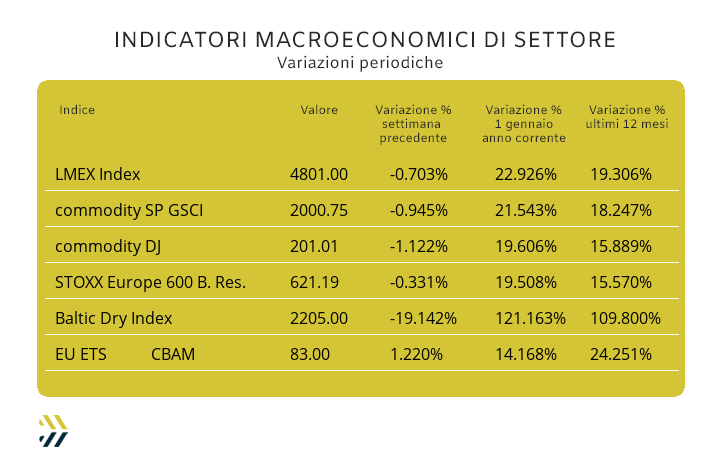 Il listino dei metalli industriali al LME è in una fase delicata di assestamento. Si consiglia di seguire con particolare attenzione l'andamento di Rame, Alluminio e Zinco |