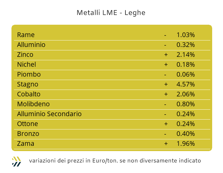 LMEX: London Metal Exchange Index – Indice ufficiale LME che calcola le variazioni di tutti i metalli quotati alla Borsa di Londra |