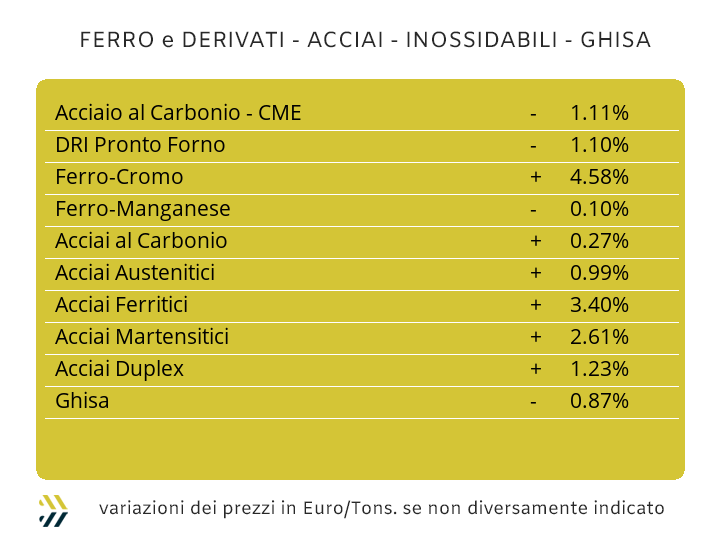 Il comparto siderurgico europeo può considerarsi pienamente operativo, pur confermando un atteggiamento di forte prudenza nell’apportare importanti variabilità delle quotazioni dei semilavorati “piani” e “lunghi”; nel caso di questi ultimi presentando orientamenti di prezzi opposti, come nel caso della vergella, in crescita e in diminuzione per i profili impiegati nelle carpenterie. La situazione è resa ancora più incerta da momenti di discordanza di importanti determinazioni di alcuni sottostanti, come il rottame turco, in aumento di 2 Dollari per tonnellata e una contrazione di 2,5 punti percentuali del riferimento del minerale di ferro alla Borsa Dalian in Cina, tutto negli ultimi otto giorni. Nell’approfondire le varie situazioni dettagliate singolarmente, i “piani” in ambito europeo hanno evidenziato le prime variazioni diffuse su tutti i principali mercati di riferimento. Il domestico ha visto variare in crescita la quotazione del lavorato a caldo del 2% (benchmark MetalWeek™ HRC 625 Euro/tonnellata), in calo dell’1% per quello “freddo” (benchmark MW CRC 715 Euro), all’opposto del “galvanizzato” in ripresa di un punto (benchmark MW HDG 730 Euro). La risposta dei produttori nordeuropei è stata quella di lasciare invariata la quotazione dell’HRC, mentre le correzioni e in entrambi i casi dell’1%, sono state praticate per il CRC e l’HDG. Nei “lunghi”, come anticipato in precedenza, la situazione è stata delineata da esigenze specifiche in base alle richieste dirette di semilavorati da parte degli utilizzatori, basse per i profili per carpenteria, ragione per la quale le quotazioni sono scese dell’1%, mentre un mercato più reattivo ha permesso di lasciare invariati i prezzi fissati la settimana scorsa sul tondino per le armature. La costante crescita dei rottami nei valori delle principali classifiche ha reso obbligata la rimodulazione verso l’alto della quotazione della billetta nella misura di 1 punto percentuale e condizionando l’adeguamento della vergella nazionale in crescita di 10 Euro per tonnellata con validità gennaio. La seconda metà del mese sarà anche quella che determinerà di quanto dovranno crescere i listini dei tubi saldati, dove i produttori avranno argomentazioni importanti per rimodulare le nuove condizioni a partire dal netto incremento del prezzo dell’HRC in Italia. Le tensioni registrate sui rottami in Turchia, in ulteriore crescita di 2 Dollari per la classifica HMS 1/2 ha inciso in forma diretta nella fissazione in ripresa del rebar FOB di 3 Euro per tonnellata, mentre una difficile situazione competitiva riferita alla vergella ha convinto i produttori dei profili in matasse a mantenere invariata la determinazione del prezzo destinato all’export. I termini sono praticamente definiti per le variazioni degli extra lega che avranno le loro decorrenze a partire da febbraio, dove per gli austenitici il Nichel ha disegnato variazioni decisamente esigenti e che saranno comprese all’interno di una forchetta tra i 15 e i 20 centesimi di Euro per chilogrammo per tutti gli AISI, dal 303 al 316 e senza esclusione per il 304 e il 304L. Una situazione di crescita degli extra per il mese prossimo che non risparmierà nemmeno i ferritici e i martensitici, in entrambi i casi attesi a revisioni rialziste stimate tra i 3 e i 5 centesimi di Euro per chilogrammo. La ripresa generalizzata delle attività produttive legate ai consumi elevati di elettricità e fino agli energivori, hanno portato il PUN a un livello decisamente alto, tanto che il parziale settimanale si è collocato tra i livelli più alti degli ultimi dodici mesi, avvicinandosi al riferimento effettivo di 11 centesimi di Euro per chilogrammo e che fu inserito come contributo energetico nel mese di febbraio dello scorso anno. |
