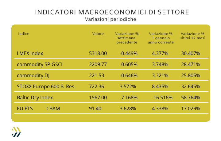 Il listino LMEX registra il primo calo settimanale del 2026 (-0,5%), dopo il balzo di inizio anno (+4.5%). Sul fronte emissioni, l’indice EU ETS-CBAM abbatte il muro dei 90 Euro nella media settimanale |