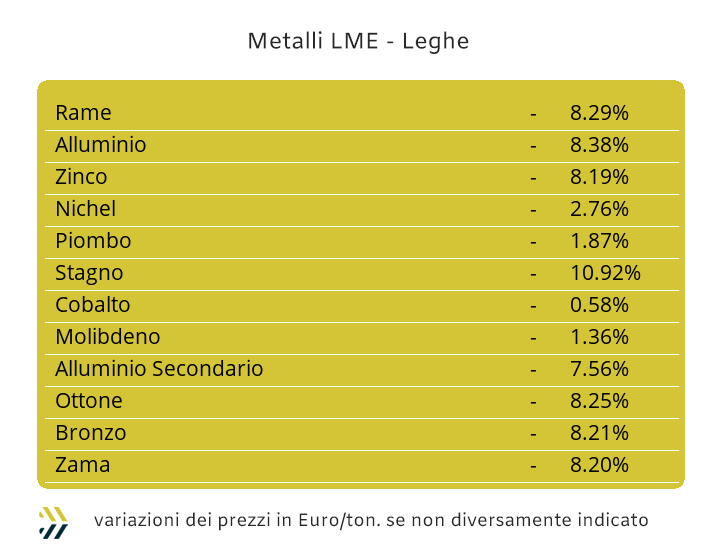 I principali metalli del comparto si sono chiamati letteralmente fuori dalle turbinose vicende che hanno riguardato il listino LME, seppure il Nichel ai fini valoriali delle composizioni e come vedremo tra poco, sia stato anch’esso colpito dalle dinamiche ribassiste degli “industriali” in Borsa. L’ambito delle variazioni in Dollari di Cobalto, Molibdeno e Titanio si è collocata entro una fascia complessiva di valutazione compresa all’interno della metà di punto percentuale nelle rispettive indicazioni positive e negative. Il Titanio si è posto sulla linea dello zero, come conseguenza della sua stabilità rispetto al dato di mercato della settimana precedente, mentre Cobalto e Molibdeno, uno per parte, interessare i campi di variabilità contrapposti, più 0,3% per il primo e meno 0,4 per il secondo. Le argomentazioni sono più articolate per il Nichel, sebbene il metallo abbia retto l’urto delle valorizzazioni ribassiste in modo meno impattante rispetto a altri metalli, come Rame e Alluminio. La sua flessione su base ottava è stata prossima al 5% in riferimento alla quotazione Dollari 3mesi e quindi ben sopra il punto percentuale rispetto alla diminuzione d’insieme di oltre il 6 dell’indice LMEX. La fase di appiattimento per il Nichel a ridosso della linea dei 17mila USD 3mesi, evidenziando in questa maniera che le forti criticità evidenziate sotto questa soglia e fino a un’escursione di 300 Dollari, possono al momento dirsi archiviate. Il quadro di stabilità visto per i principali metalli di riferimento del comparto, come Cobalto, Molibdeno e Titanio, ha caratterizzato anche quello della base Cromo nel prezzo Dollari per libbra. La corsa verso l’ignoto del Tungsteno e sicuramente a supporto di contestualizzazioni produttive difficilmente collocabili al di fuori di quelle belliche, ha dato nuovo slancio alla quotazione Dollari per chilogrammo, riportando il 4,5% di crescita su base settimanale. |