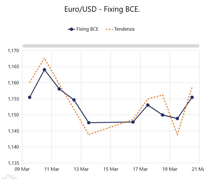 L’Euro recupera terreno sul Dollaro e scavalca la soglia di 1,150. Il nuovo baricentro del cambio si sposta ora verso la parità virtuale a 1,167 |